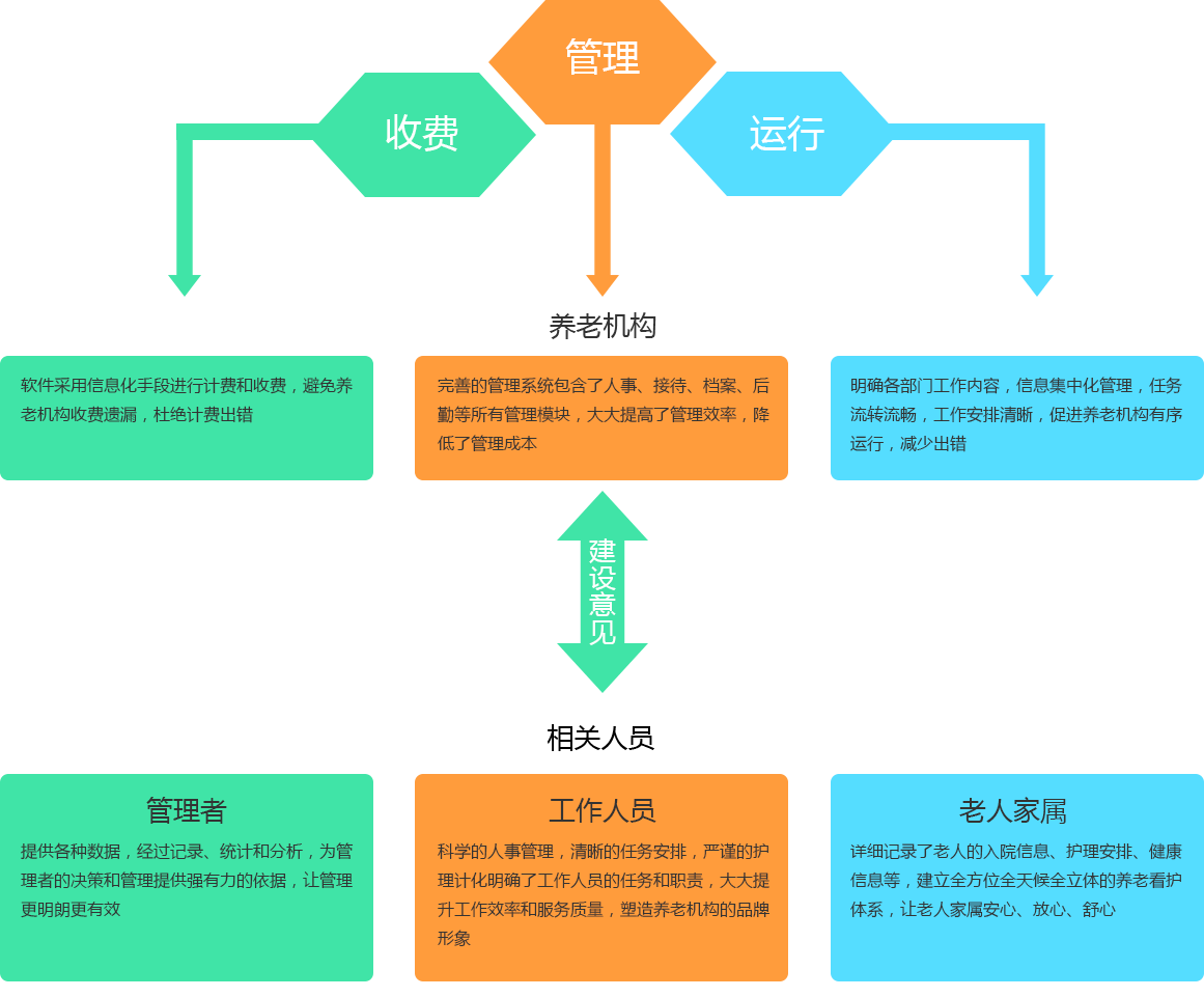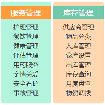 护理管理、餐饮管理、用药服务、亲情关爱、安全看护…