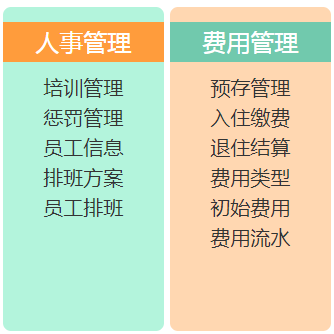 费用类型、押金管理、欠费管理、交费登记、退住结算…